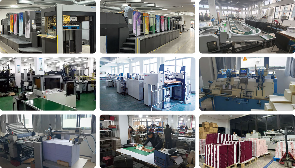 Sinds de oprichting heeft het bedrijf voortdurend geavanceerde apparatuur geïntroduceerd en beschikt het nu over meerdere sets precisiedruk- en inbindapparatuur, waaronder Heidelberg vierkleurenpersen, vouwmachines, machines voor het matchen van pagina's, machines voor het lijmen van pagina's, volautomatische draadsluitmachines, automatische machines voor het maken van leren hoesjes, volautomatische machines voor het maken van tassen en volautomatische machines voor het maken van dozen. Door gebruik te maken van een productiemodel dat precisieapparatuur combineert met vakmanschap, zijn notebooks duurzaam, plat en soepel. Het dubbele composietproces "thread-locking + lijm-binding" maakt 180 graden plat schrijven zonder obstakels mogelijk, waarbij de binnenpagina's stevig vastzitten en niet loskomen, wat voldoet aan hoge kwaliteitsnormen. Het bedrijf biedt one-stop-aanpassingsdiensten voor zakelijke en individuele gebruikers, inclusief aangepast ontwerp van de omslag en de binnenpagina (gereguleerd/vierkant/gestippeld/planner-sjablonen), speciaal papier, leer en hulpmateriaalselectie, en heeft exclusieve culturele geschenken en zakelijke kantooroplossingen gecreëerd voor duizenden ondernemingen over de hele wereld.