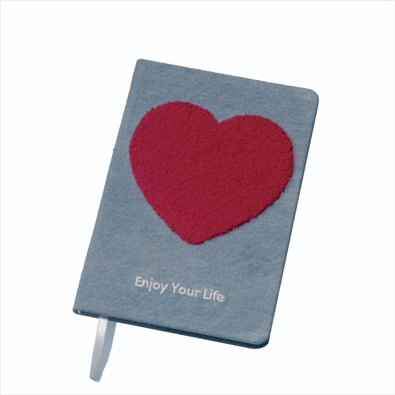 De omslag van dit met doek bedekte notebook is gemaakt van lichtblauwe denim - zoals zachte stof. De meest oogopvangfunctie is de driedimensionale pluche rode hartapplicaties - het delicate textureerde oppervlak nodigt u uit om uit te reiken en aan te raken, waardoor tactiel plezier en een vleugje zoetheid worden gebracht. Onder het hart dienen de geborduurde woorden "geniet van je leven" als een genezende herinnering elke keer dat je het opent - mis de schoonheid van het leven niet.