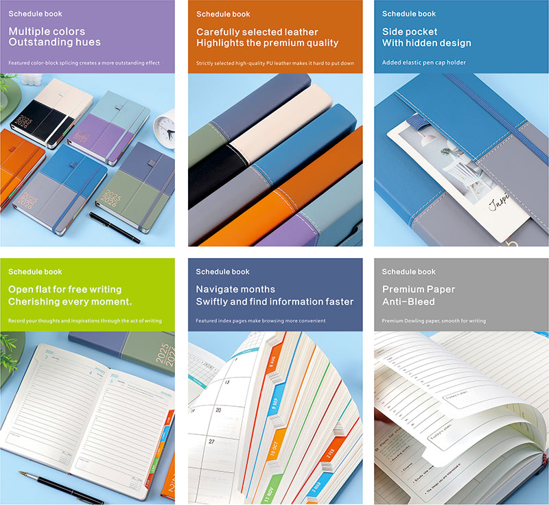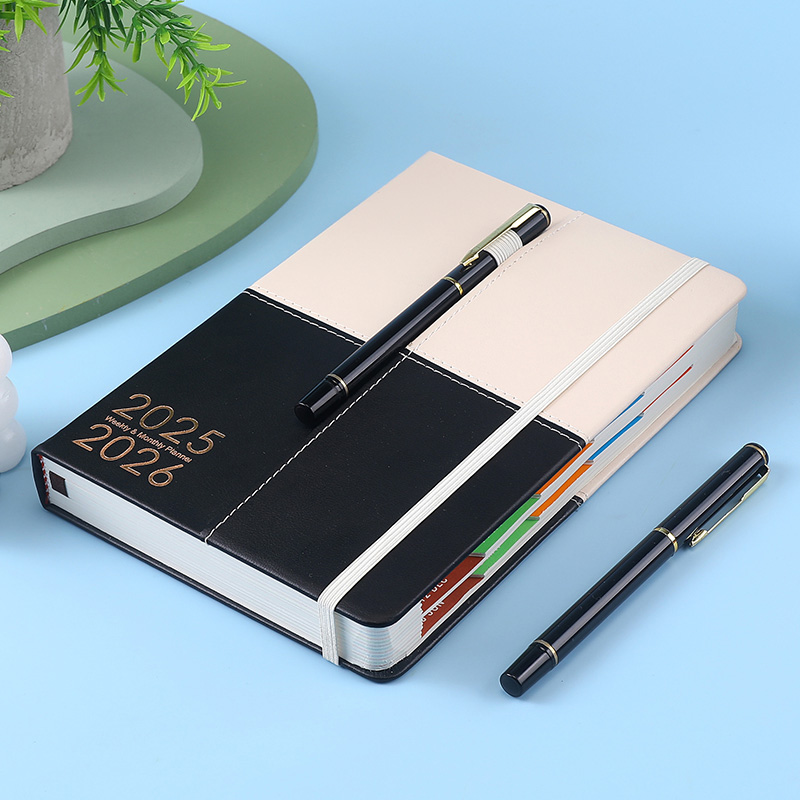 Dit dagelijkse plannotitieboek, door het ontwerpconcept van tweekleurige tijd en ontspannen planning, creëert een dekking met tweekleurige stiksels en naaien, uitgerust met elastische riemen om de binnenpagina's plat te beschermen, en de binnenpagina's markeren duidelijk de richting van 2025-2026, van jaarlijkse plannen, maandelijkse plannen tot dagelijkse plannen tot DOS, om je doelen te helpen je doelen te zien en de tijd te zien.