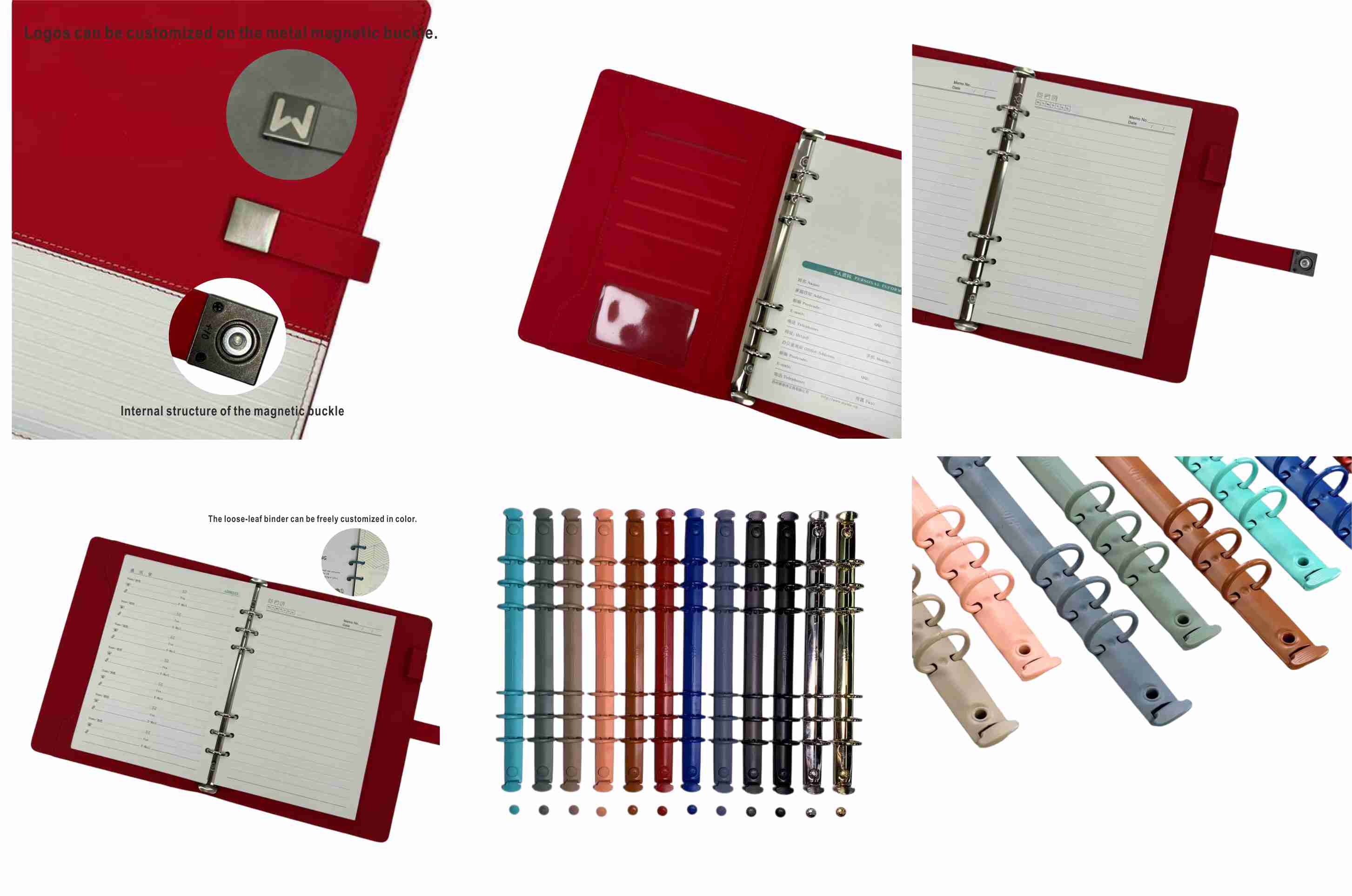 Er zijn veel kleuren om uit te kiezen in het bindmiddel. Het klassieke goud verbetert het gevoel van verfijning, wat geschikt is voor zakelijke onderhandelingen en belangrijke vergaderingen. Kalm zwart, vers blauw, levendige sinaasappel en andere kleuren kunnen vrij worden gekoppeld aan de hand van persoonlijke voorkeuren en coverstijl. Het ondersteunt zelfs op maat gemaakte kleuren, zodat het bindmiddel perfect past bij uw esthetiek en gebruiksscenario's, waardoor een uniek uiterlijk van het notebook wordt gecreëerd. Naast bruikbaarheid heeft het ook meer gepersonaliseerde logo -aanpassing, die opvalt van veel gewone notebooks.