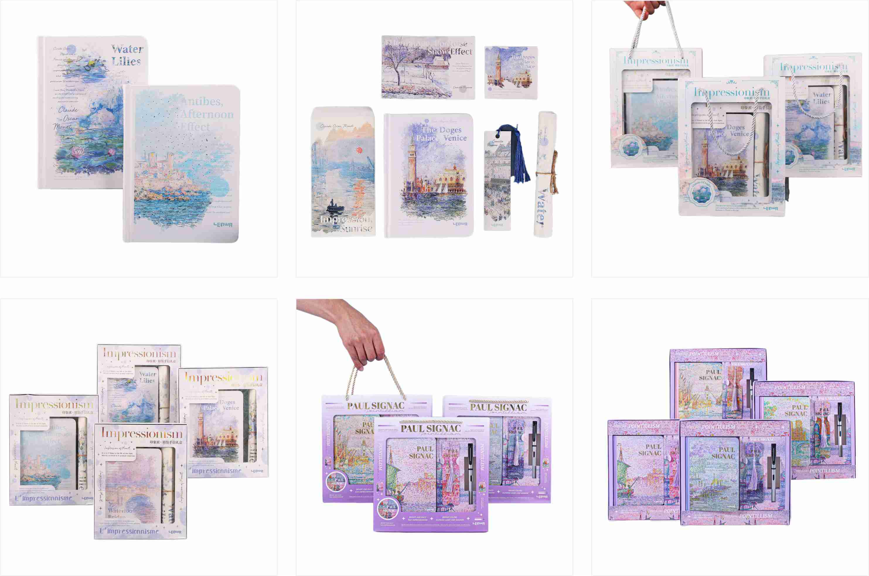 Het ontwerp van het enkele notitieboek is eenvoudig en voortreffelijk, en de set van de cadeau voegt een gevoel van ceremonie toe. Er zijn paarse geschenkdozen en geschenkdozen met een impressionist-thema om uit te kiezen, met dezelfde pennen, bladwijzers, enveloppen, enz., Met alle behoeften van schrijven en decoreren. Bij het geven van geschenken is het uitpakken als het openen van een artistieke "blinde doos" om je hart uniek te maken. Of het nu gaat om het versieren van het bureau of verrassende familieleden en vrienden, het kan kunst naadloos integreren in het dagelijks leven.