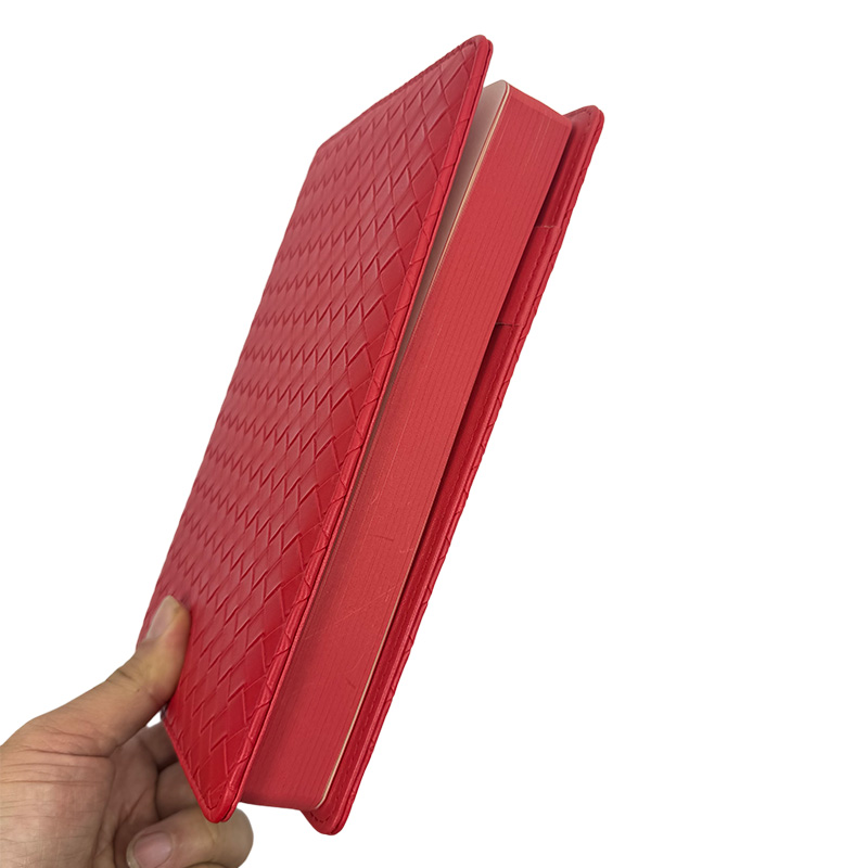 De omslag is gemaakt van premium rood leer met een unieke geweven textuur, die lijkt op artistieke symbolen verouderd door de tijd. Elke groove draagt het nauwgezette vakmanschap van ambachtslieden - waar de zachtheid en veerkracht van leer naadloos bij je aanraking opgaan, en biedt een prachtige tactiele ervaring. De levendige rode tint straalt zowel individualiteit als klassieke charme uit: het belichaamt professionaliteit in zakelijke onderhandelingen, brengt passie over in dagelijkse notities en heeft een stille verklaring van verfijnde smaak wanneer ze in de hand worden gehouden.